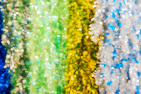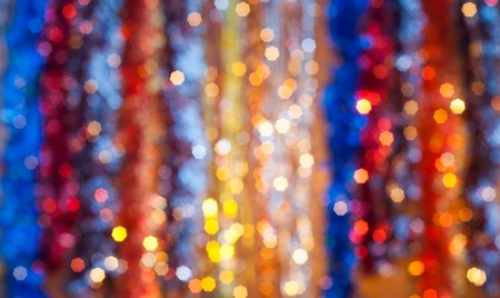 blurred colorful tinsel Christmas background, soft bokeh