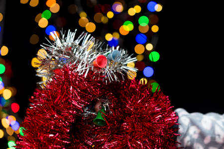 Christmas bright colored tinsel decor and christmas background decorations.