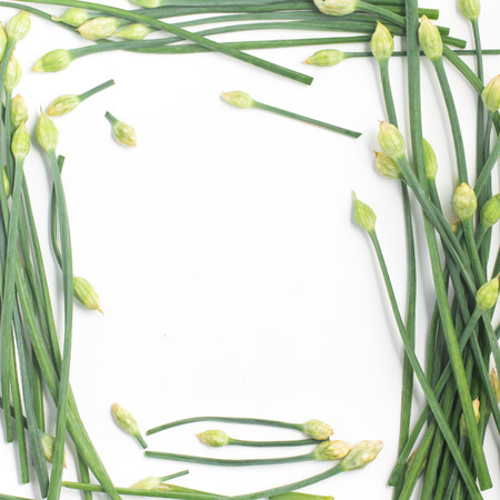 Garlic Chives Flower Frame. Nira isolated on white background