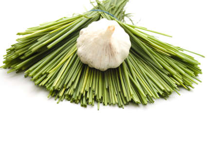 Garlic chives isolated on white background