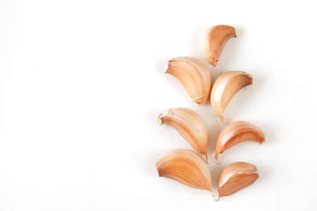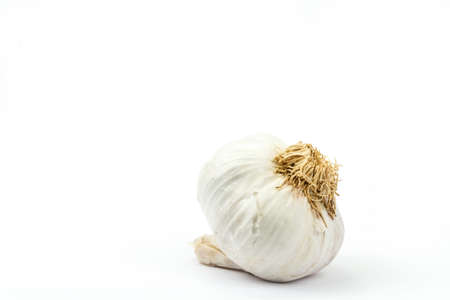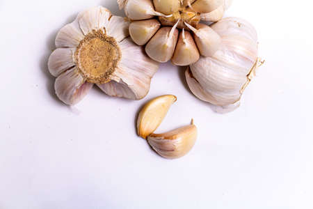 Close up garlic on white background providing copy space