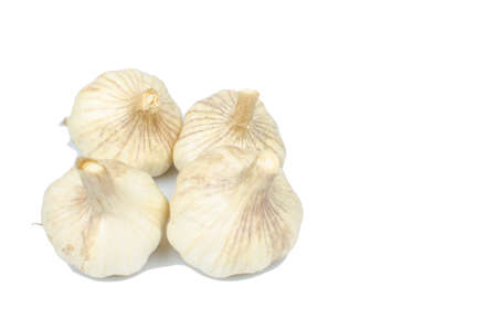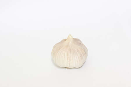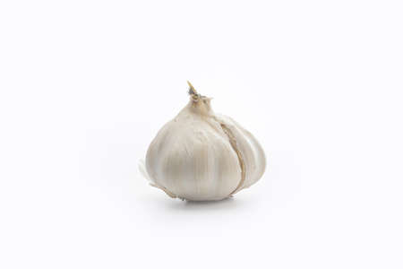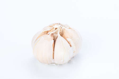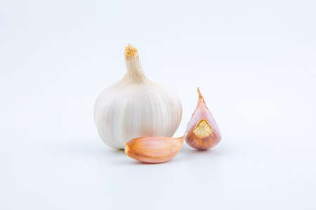 Raw white garlic with white background.