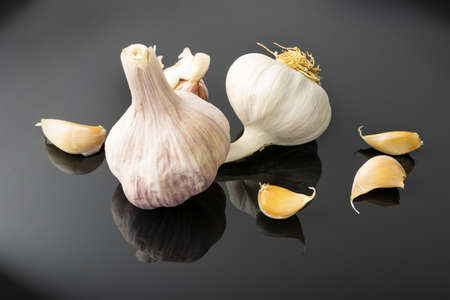 Garlic with reflection on black background