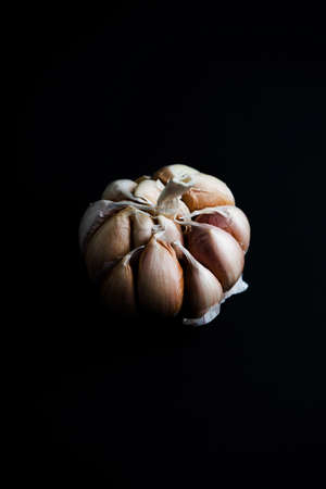 Close up of garlic bulb on black background