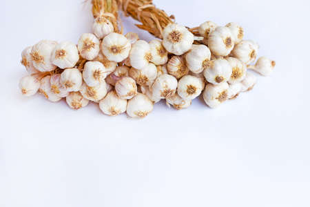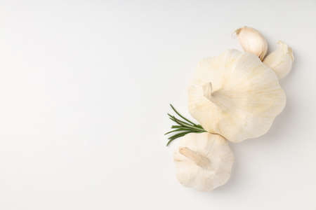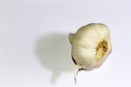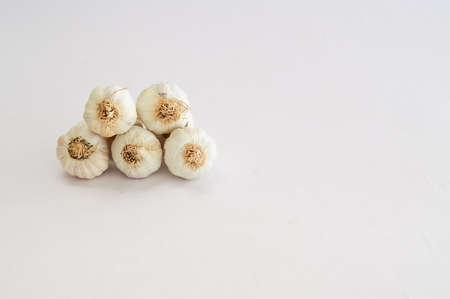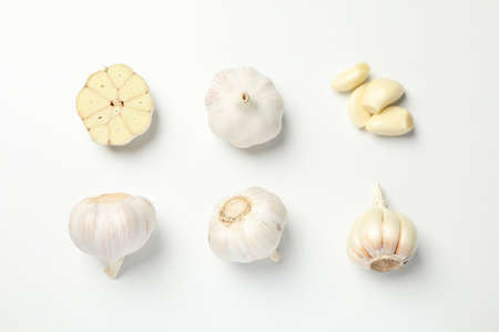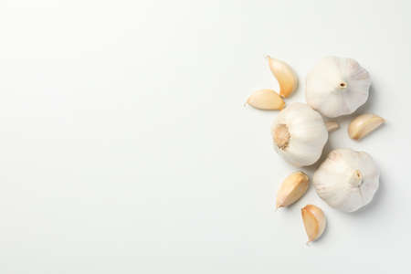 Garlic on white background. Copy space