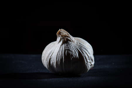 garlic on a black background with copy space. close-up