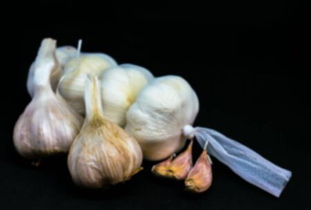Fresh garlic on black background. Selective focus. Blurred view