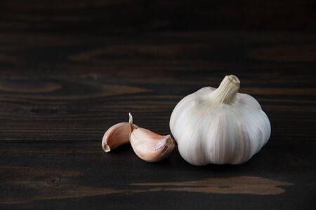 Garlic bulb on the wooden vintage background