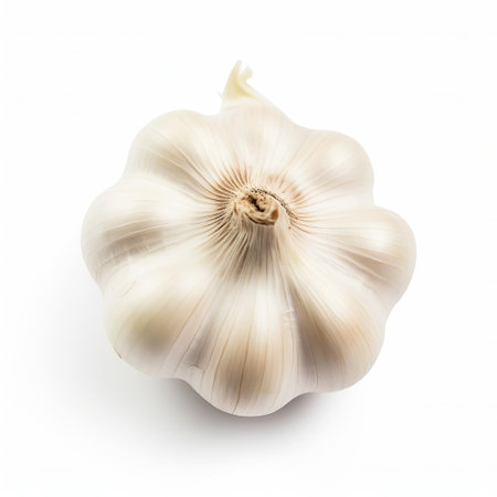 garlic, a fundamental ingredient in many cuisines, is showcased in this high-quality png image, offering a detailed close-up view from the top, set against a clean white background, perfect for cooking blogs, recipe websites, and food-related designs. ai generated
