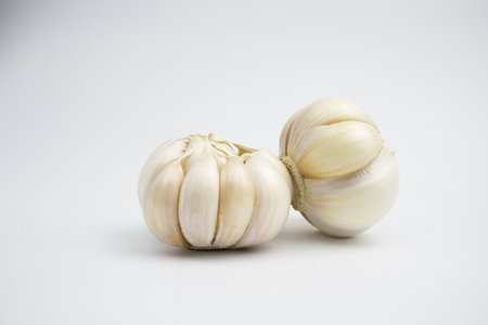 Organic garlic on a white background.