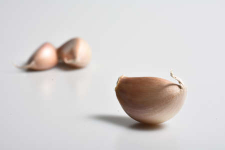 Garlic cloves on a white background. Shallow depth of field.