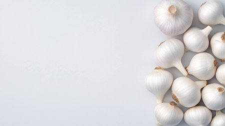 Fresh garlic bulbs arranged on a light background, perfect for culinary uses and healthy cooking concepts, showcasing natural ingredients and freshness