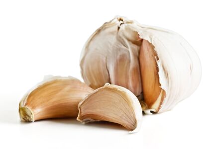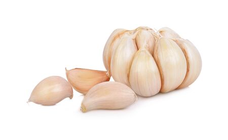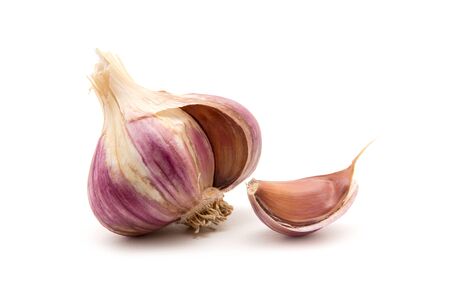Garlic isolated on white background close up. Raw garlic with clove. Garlic bulb.