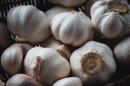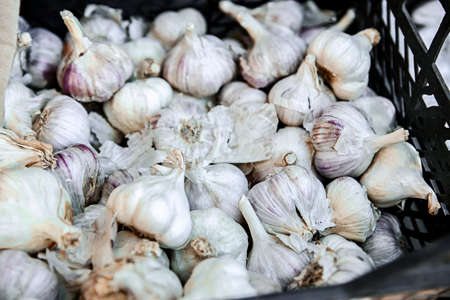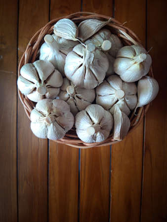 Stack of garlic on basket