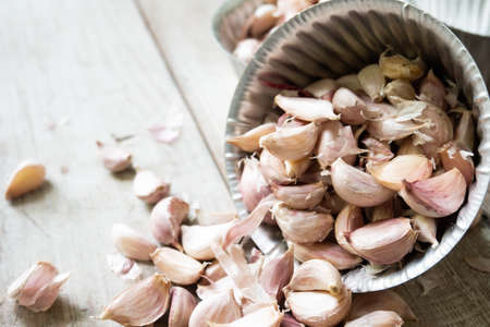 Fresh peeled garlic cloves ready for cooking