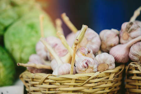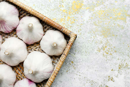 Garlic in a basket, alternative medicine against viruses. spices