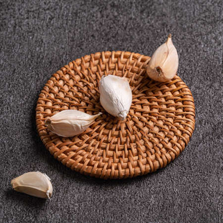 A composition of cloves of garlic on the table. Healthy eating.