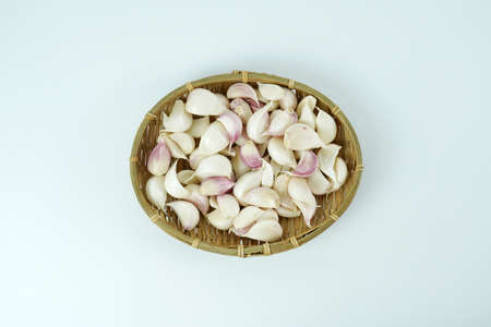 cloves of garlic. Isolated garlic. Raw garlic segment isolated on a white background, with the path cut off