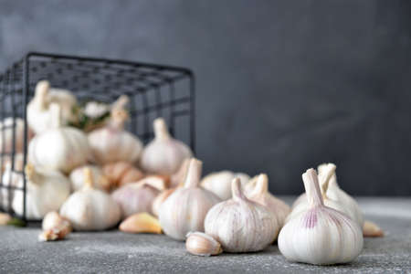 Fresh garlic on gray table