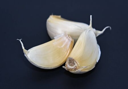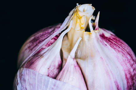 Garlic on a black background, macro