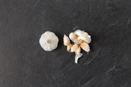 garlic on slate stone background