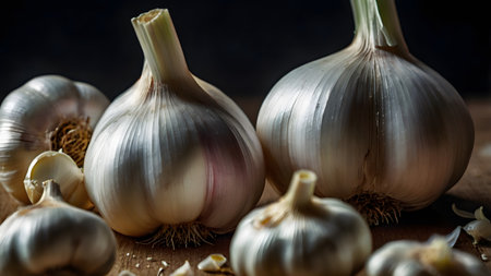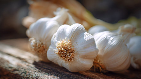 closeup of garlic on wooden table
