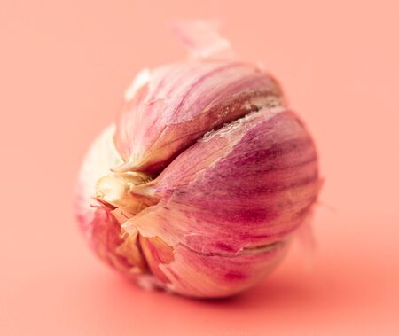 Head of garlic on a pink background.