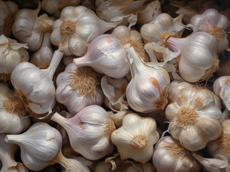 Pile of fresh raw healthy garlic filling the screen