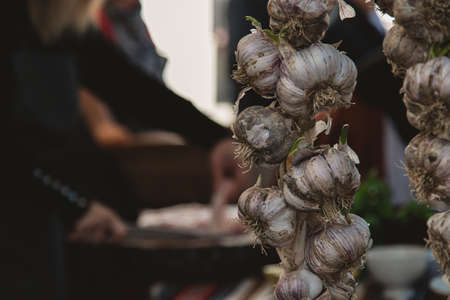 Garlic for sale on Provence market, Marseille city, South France