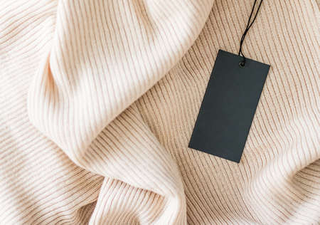 Comfort clothing and black price tag as flatlay background, sustainable fashion and brand label concept