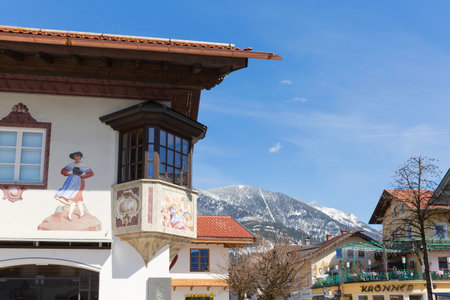 GARMISCH-PARTENKIRCHEN, GERMANY – APRIL 03, 2015: Garmisch-Partenkirchen is a mountain resort town in Bavaria, southern Germany.The village is a host to the leaders of the world's largest economic powers G7