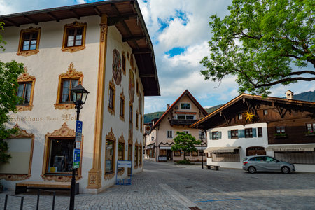 The wonderful and famous painted houses of Oberammergau in Bavaria - OBERAMMERGAU, GERMANY - MAY 27, 2020