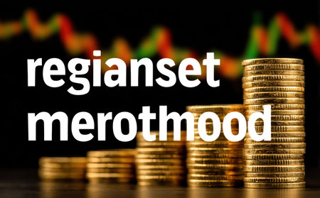 Stacks of gold coins in ascending order with "regianset merotmood" text overlay, graph backdrop
