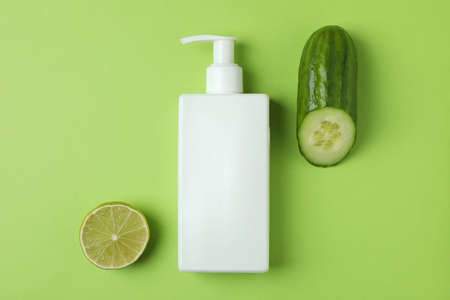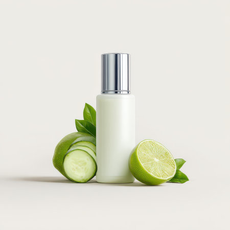 Cucumber and Lime Natural Skincare Product on Cream Background with Fresh Ingredients for Organic Beauty and Wellness Promotion