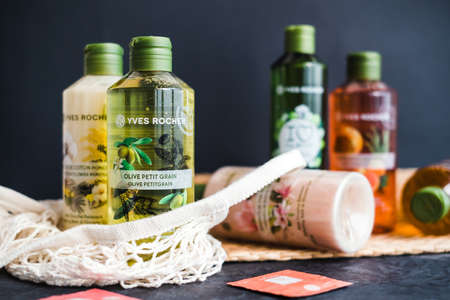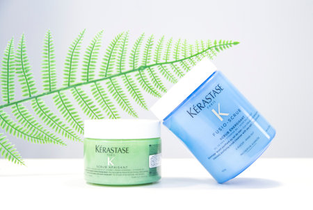 Russia, Kemerovo 01.02.2021. French luxury cosmetics for body, hair and face care. professional makeup loreal kerastase.