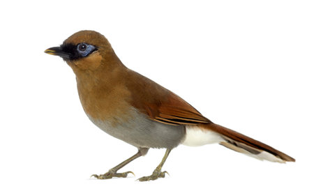 Profile of a Grey Sided Laughingthrush, Garrulax Caerulatus, isolated on white