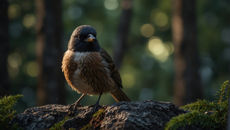 closeup shot of a beautiful bird on a branch in the forest. generative ai