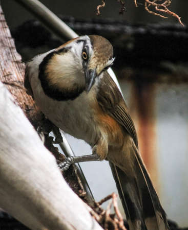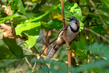 Image of Lesser Necklaced Laughingthrush (Garrulax monileger) on the tree branch on nature background. Bird. Animals.