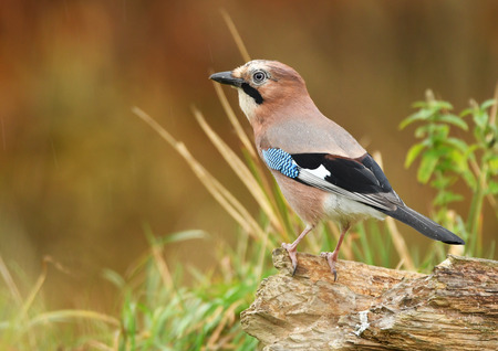 Beautiful Eurasian jay (Garrulus glandarius) in autumn