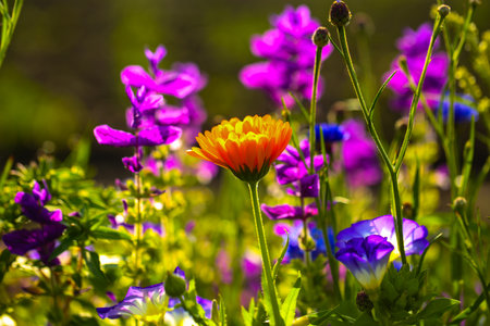 Colorful flowers in the garden on a sunny day. Selective focus.