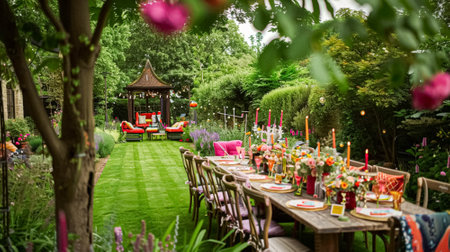 Summer party celebration in the garden, outdoor lounge and countryside house patio decor, English country cottage house design idea