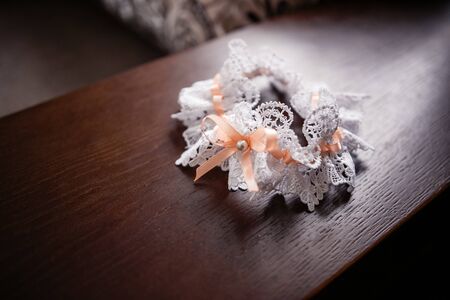 Bride garter on brown background