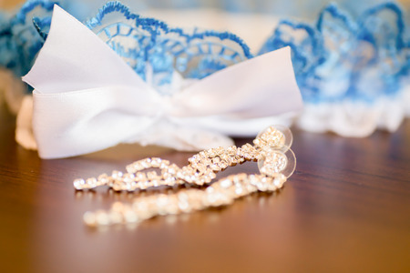 Bride accessories details. Earings and jewelry details