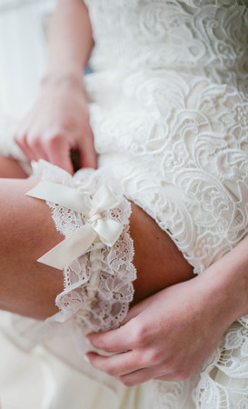 Bride wearing wedding garter