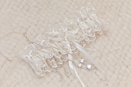 Beautiful bridal garter of bride light white color