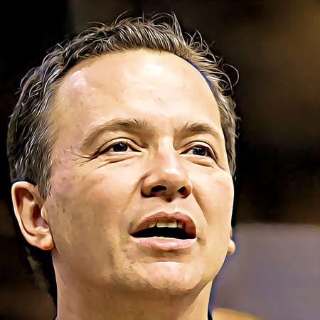 Cartoon-style portrait of person's face.
