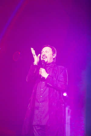 Russian singer Stas Mihailov sings on stage.