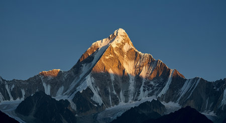 Majestic Annapurna south peak glowing in the morning light.
