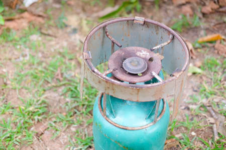 Green picnic gas stove put on ganden