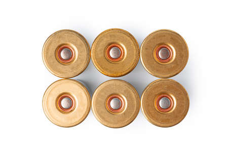 ammo magazine bullet on blur pistol magazine hand gun background selective focus isolated on white high angle view